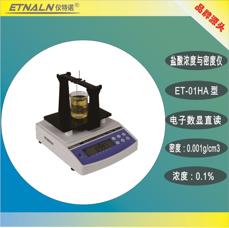 鹽酸濃度與密度測試儀ET-01HA是根據(jù)阿基米德原理密度法,自動(dòng)顯示鹽酸濃度值HCL%、波美度Be、密度SG;具有測量精準(zhǔn)、操作快速簡便、可靠性高等主要特點(diǎn); 同時(shí)可轉(zhuǎn)換標(biāo)準(zhǔn)溫度20℃狀態(tài)下鹽酸濃度值。