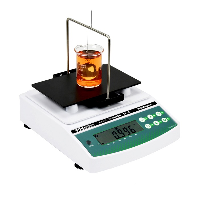 實(shí)驗(yàn)室常用的電子式液體密度計(jì)怎么測(cè)比重呢?采用阿基米德原理浮力法的電子液體密度計(jì),以常用的ET-03L為例,測(cè)量液體比重的步驟簡(jiǎn)單,基本上在拿到儀器后,看下說明書就可以操作。