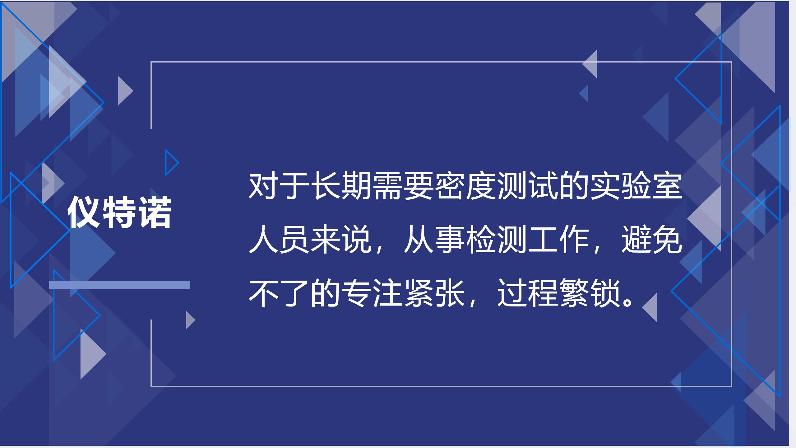 對(duì)于長(zhǎng)期需要密度測(cè)試的實(shí)驗(yàn)室人員來(lái)說(shuō),從事檢測(cè)工作,避免不了的專注緊張,過(guò)程繁煩,有了儀特諾固體密度測(cè)試儀,讓你的【密度檢測(cè)】工作從此變得每天都很輕松,很簡(jiǎn)單!