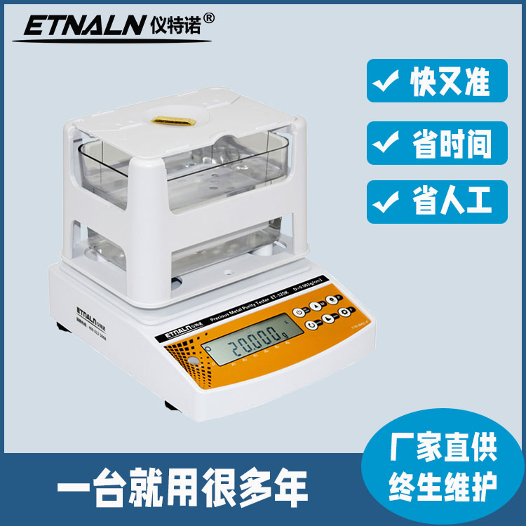 黃金密度計_貴金屬純度檢測儀_黃金首飾檢驗真假的儀器,ET-320K,ET-600K 、ET-1200K系列產(chǎn)品屬升級換代產(chǎn)品,相對于其它競爭產(chǎn)品,本系列產(chǎn)品重點提升了稱重精度,簡化了操作步驟與方式,升級了軟件的應用功能,使得測量結(jié)果的可靠性得到進一步提高;并分別具有黃金、鉑金、銀三個含量測量模式及一個合金測量模式。