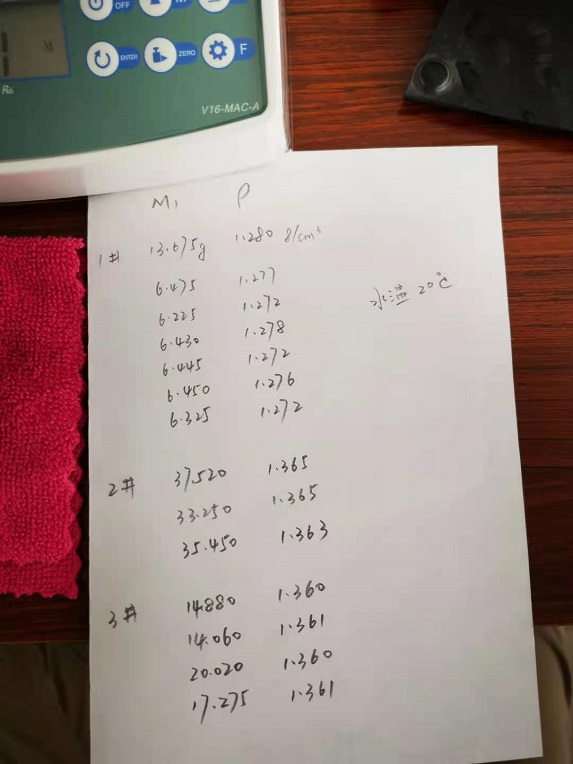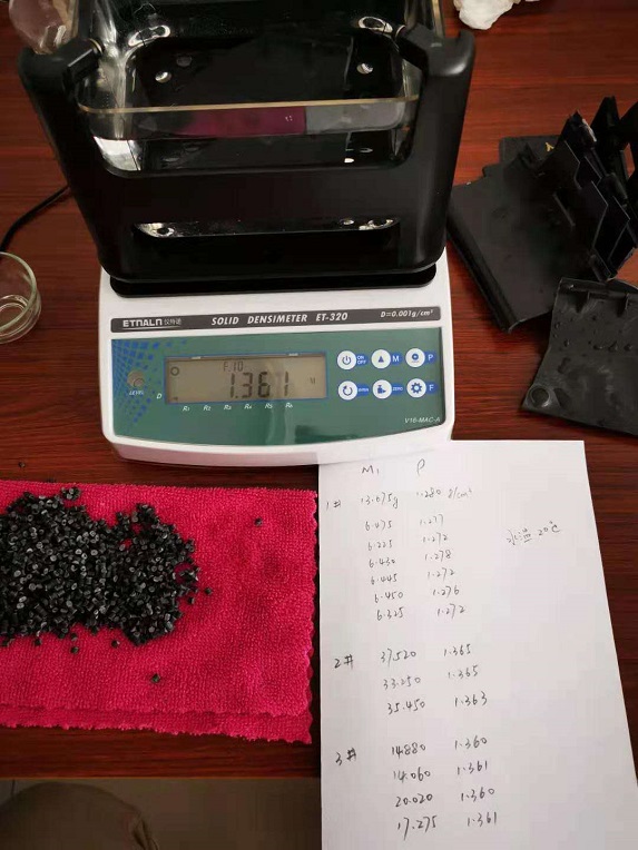 ET-320固體密度測(cè)試儀,測(cè)量客戶寄來的樣品后,測(cè)量顆粒,模具等產(chǎn)品的密度結(jié)果。